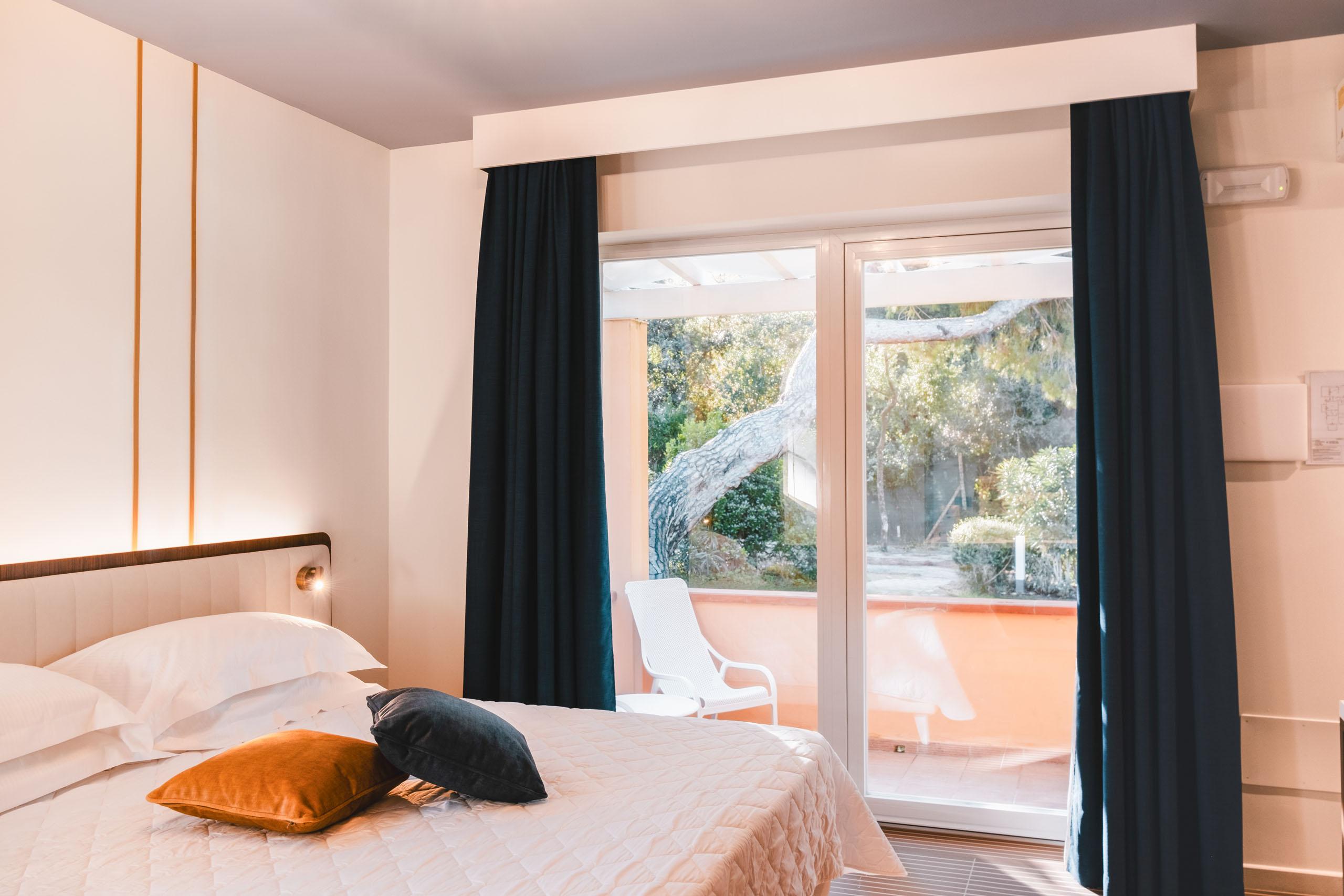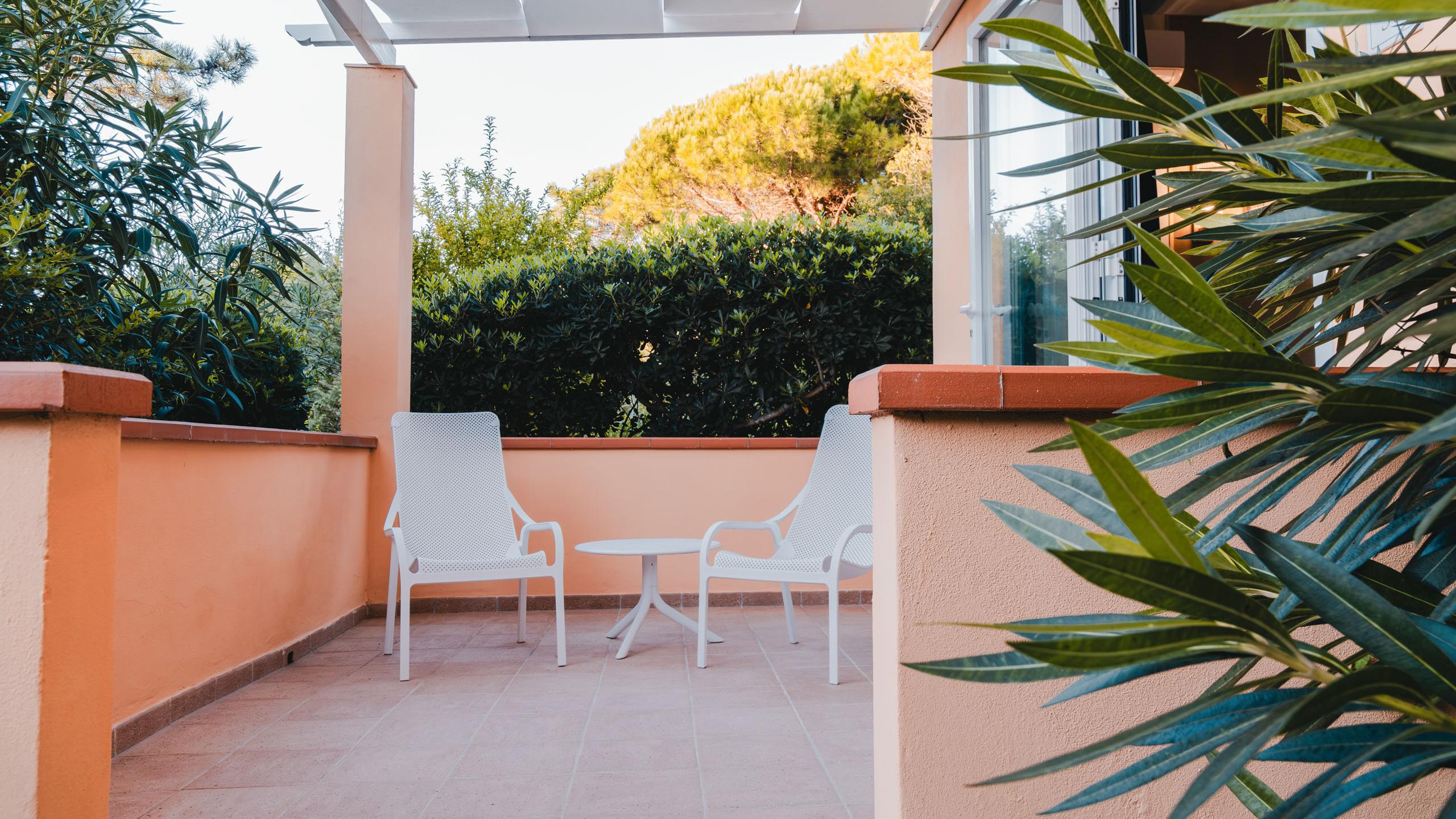 Ein Hauch von Frische und Modernität machen diese Zimmer im Parterre der Villa Capraia aus: separater Eingang, elegantes, helles Ambiente, private Terrasse und maritimes Design. Eine ganz neue, stilvolle Art, die Costa degli Etruschi zu erleben.